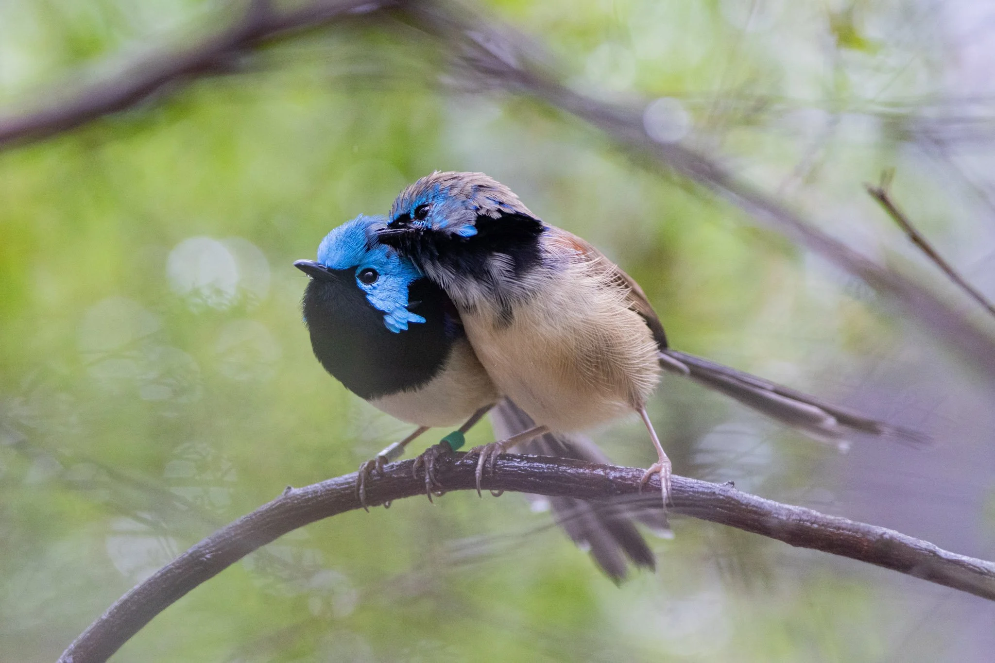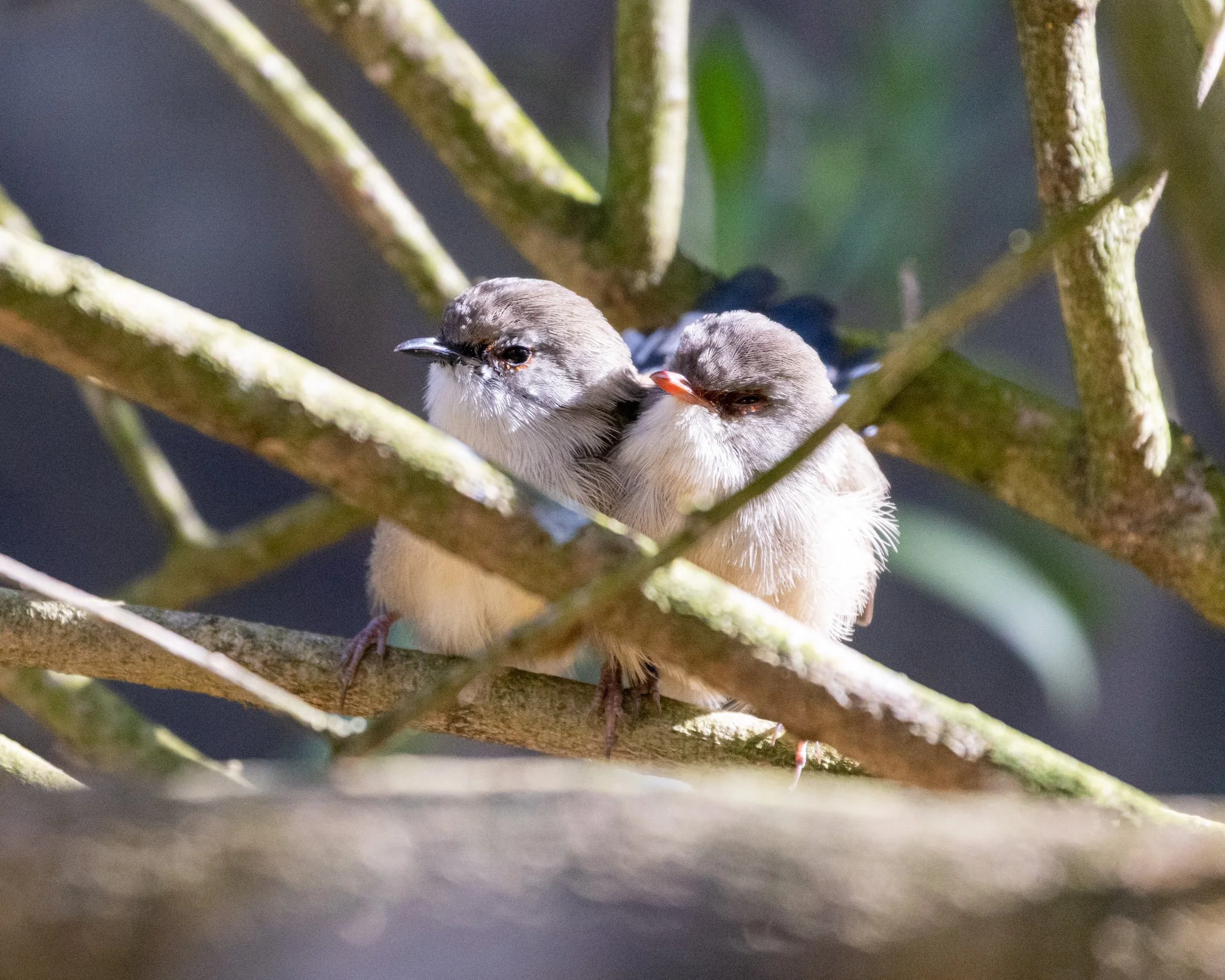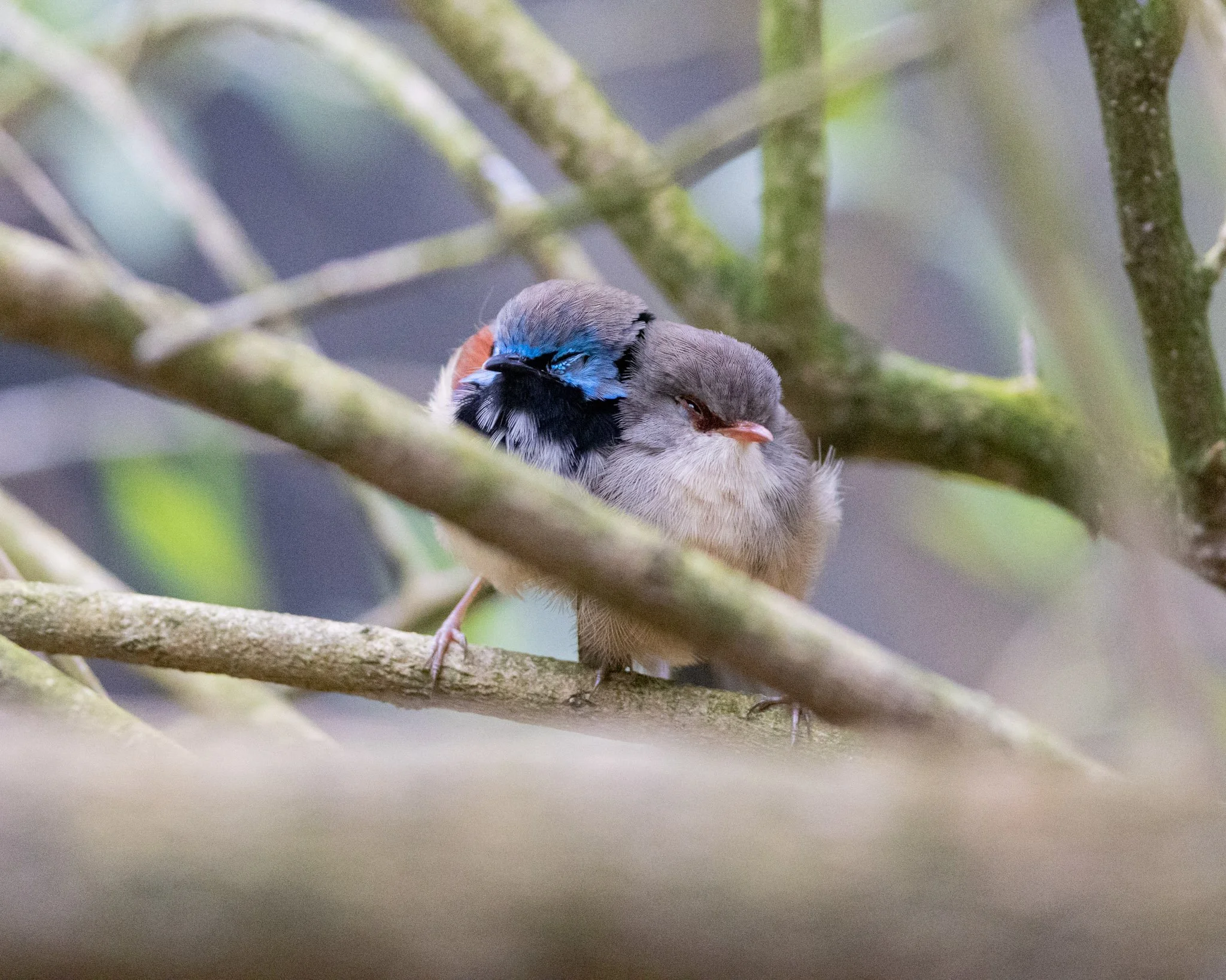Immature Variegated Fairywren male napping with mum on 27/8/25. When they were napping, one of them would often be pushing against the other one.